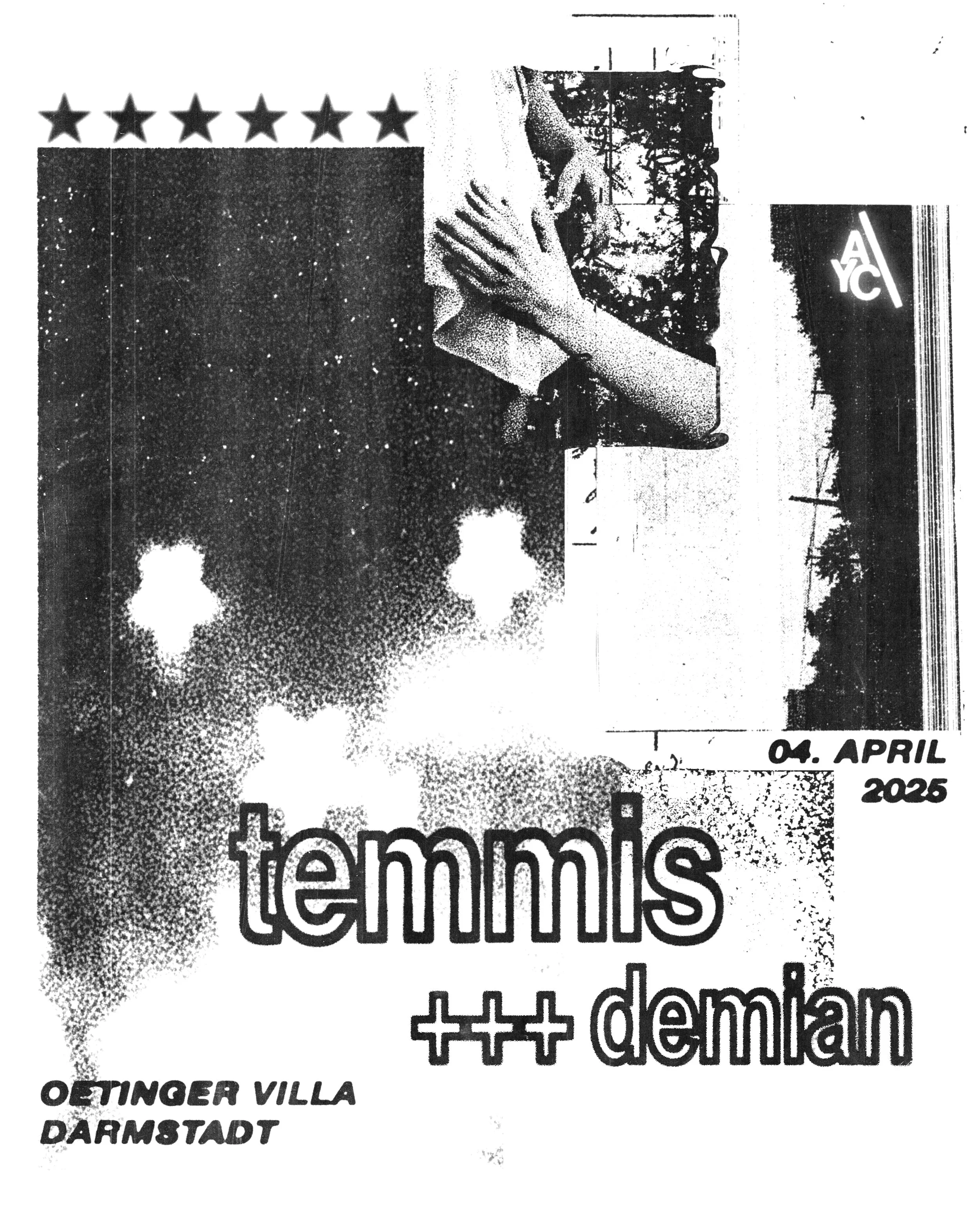 Concert poster TEMMIS +++ DEMIAN show at the Oetinger Villa in Darmstadt.